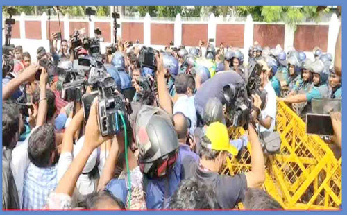 মঙ্গলবার রাত সাড়ে ৮টার দিকে এ ঘটনা ঘটে। সংবাদ লেখার সময়ও (রাত ৯টা) আন্দোলনকারীরা স্লোগান দিয়ে বঙ্গভবনে প্রবেশের চেষ্টা করছিলেন।